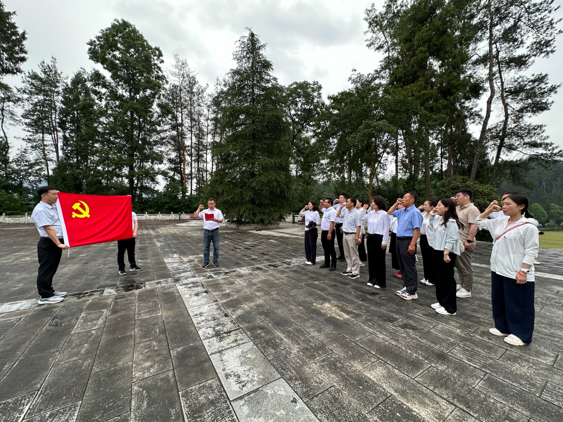 最后,全體黨員干部來到革命烈士紀(jì)念碑前,面對(duì)鮮紅的黨旗,莊嚴(yán)地舉起右拳,重溫入黨誓詞,再次感受那令人激動(dòng)無比的入黨時(shí)刻。